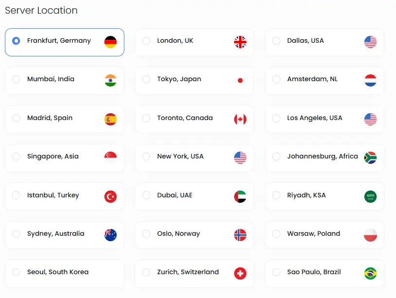4. قم بالسحب للأعلى، واختار موقع الخادم الأقرب لجمهورك، لأن قرب السيرفر من المستخدمين يقلّل زمن تحميل الصفحات ويجعل الموقع يعمل بسرعة واستقرار أعلى.